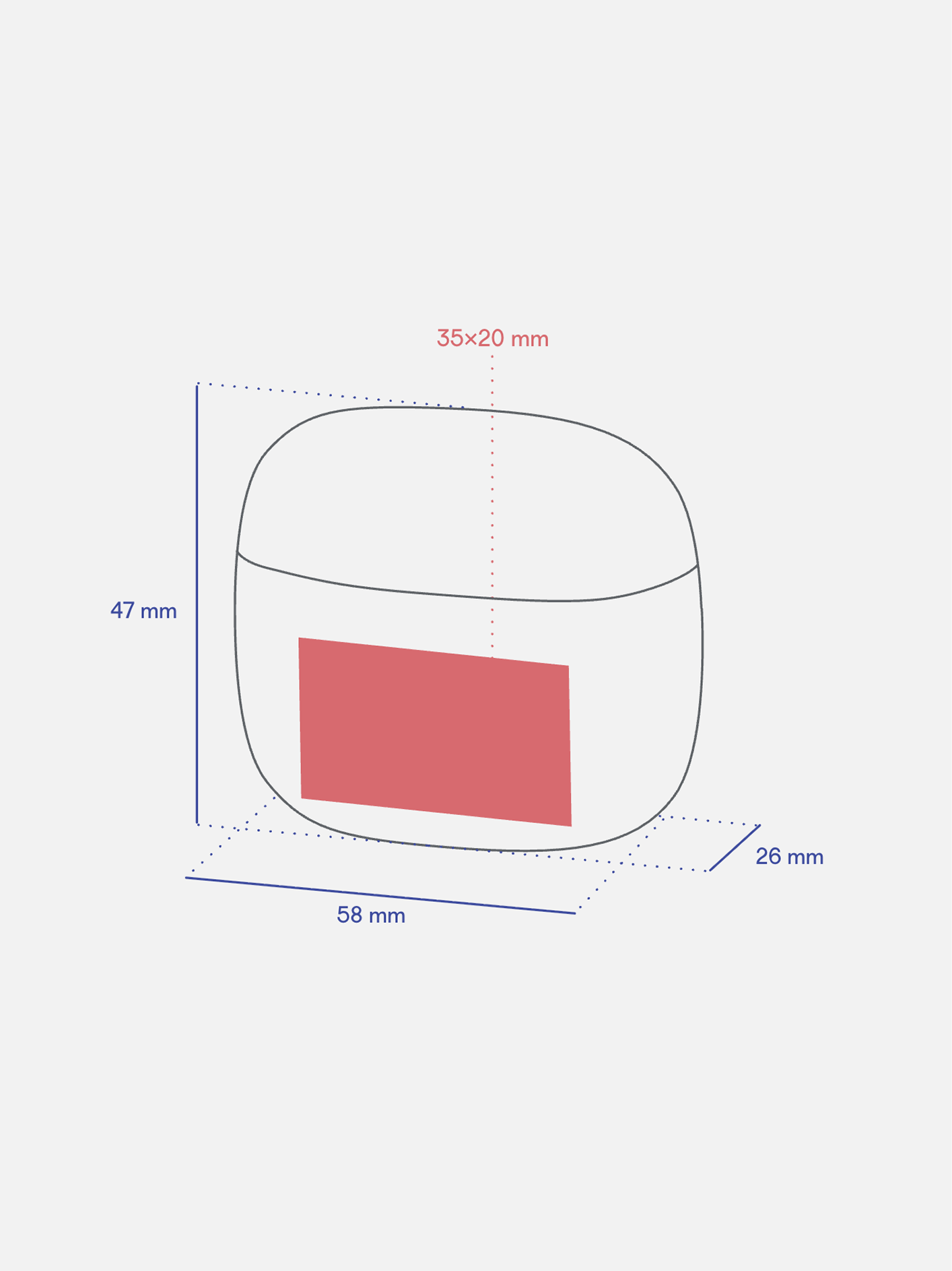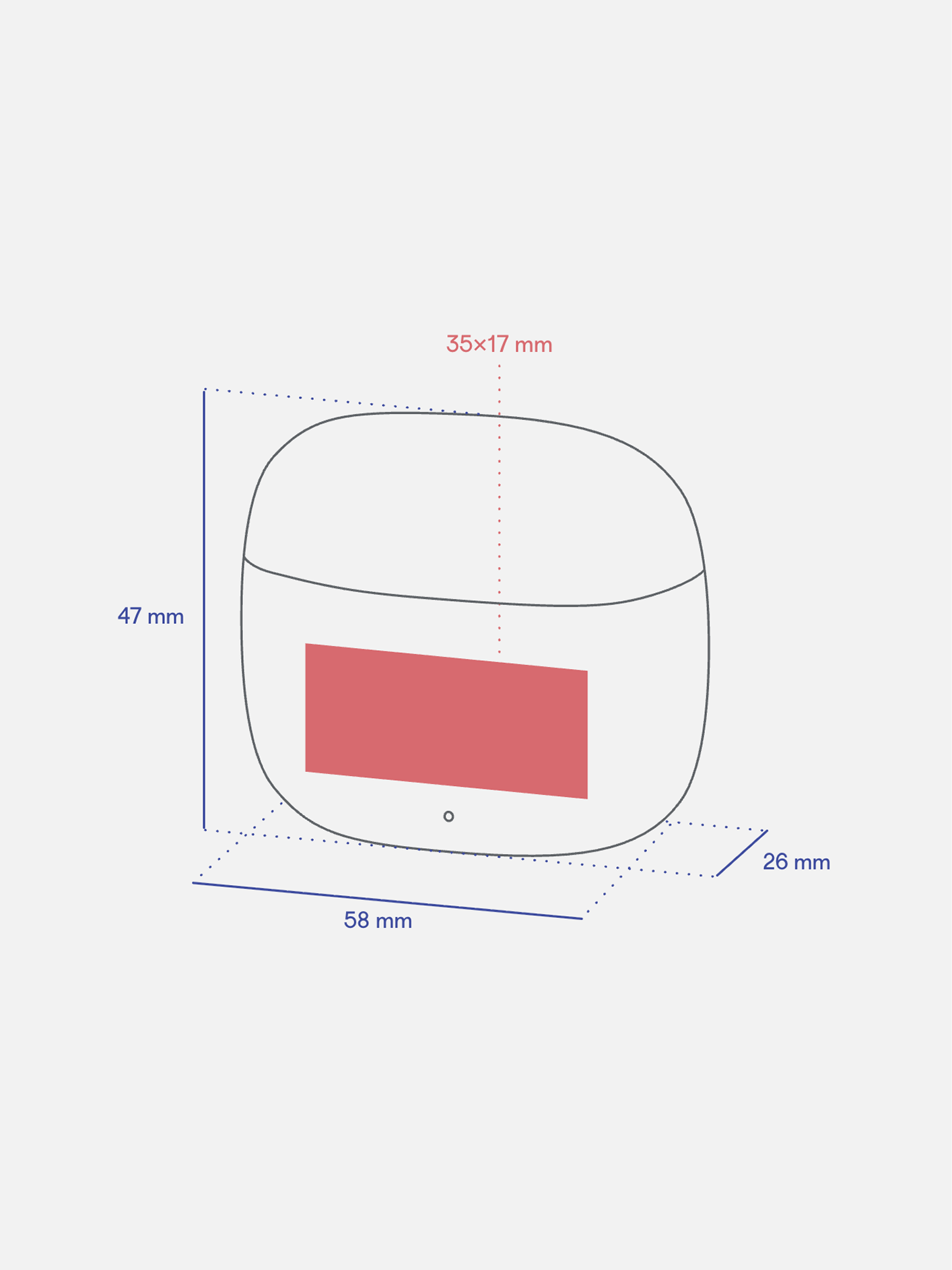 - Rozměry: 5,8 × 4,7 × 2,6 cm