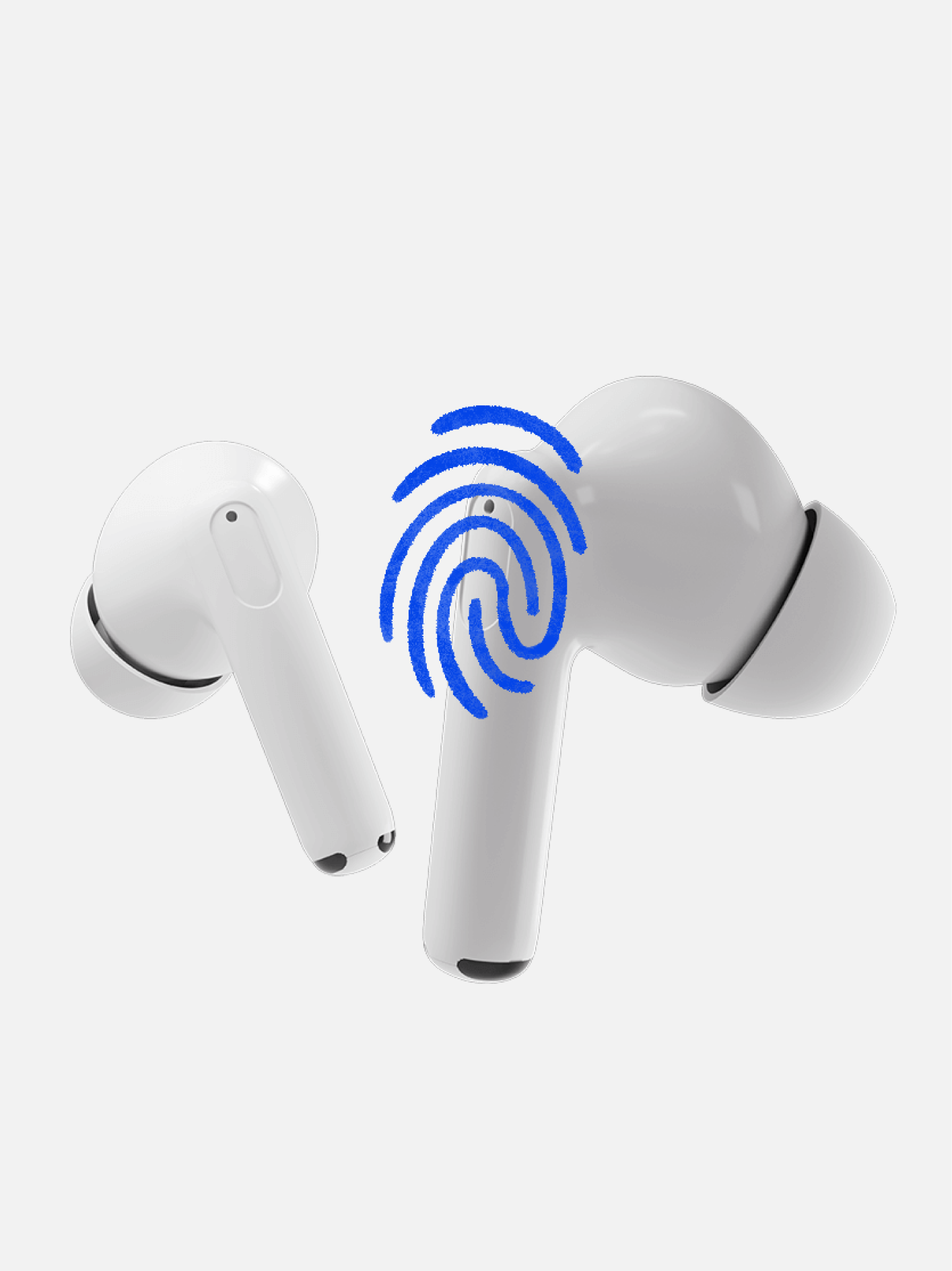 Dotykové plochy umožňují přepínání skladeb nebo přijímání hovorů, vestavěný mikrofon zajistí čistou komunikaci a LED indikátory přehledně zobrazují stav baterie.