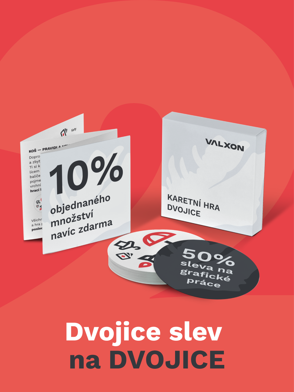 Vytvořte si vlastní originální karetní hru Dvojice, která baví, trénuje postřeh a zároveň účinně propaguje vaši firmu. Dodáme kompletní řešení včetně grafického zpracování karet, krabičky a návodu.