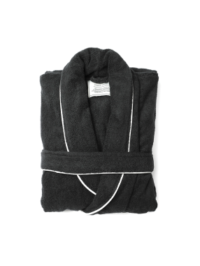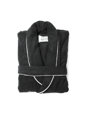 Měkký, pohodlný župan z luxusního plyšového materiálu s velkou kapucí a ozdobným lemováním. Dvě přední kapsy a pásek v pase. Župan je vyroben ze 70 % recyklovaného materiálu z PET lahví a je vakuově balen. Certifikace OEKO-TEX Standard 100. Velikost S/M.