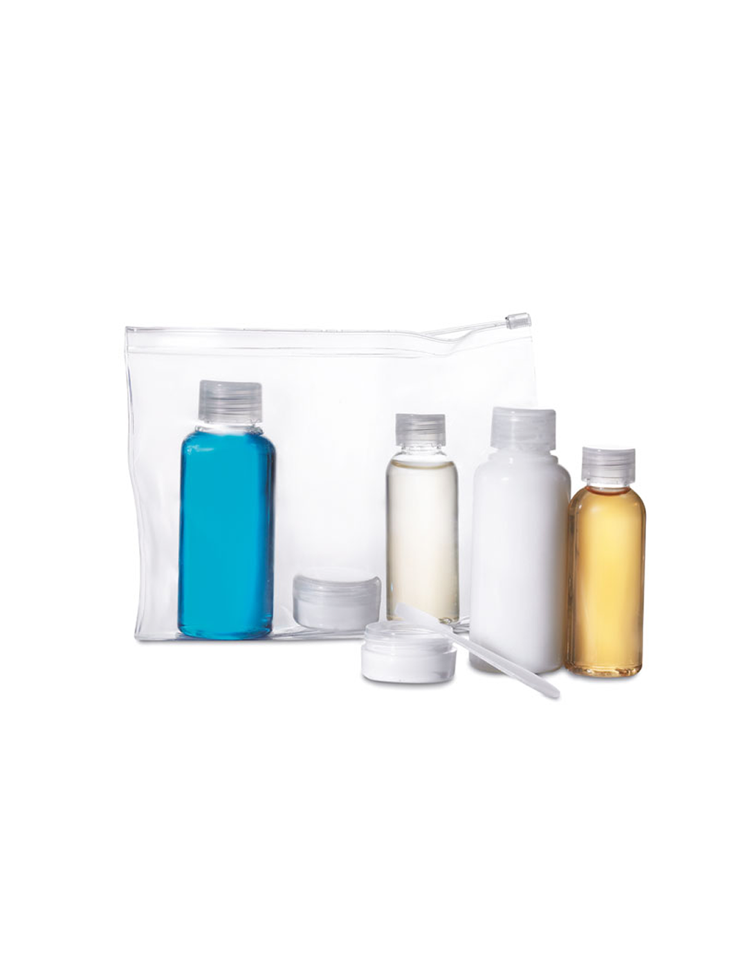 Přehledná cestovní taštička se šesti prázdnými lahvičkami pro snadné a organizované cestování. Ideální řešení pro přepravu kosmetiky v příručním zavazadle.